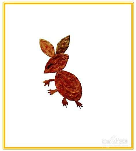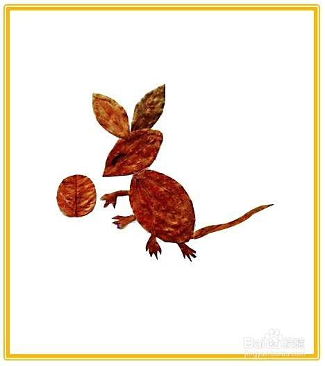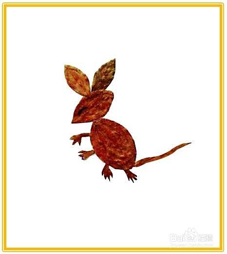 再用树叶及小剪刀,剪出动物的身体及爪子部分,如下图所示。