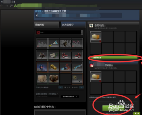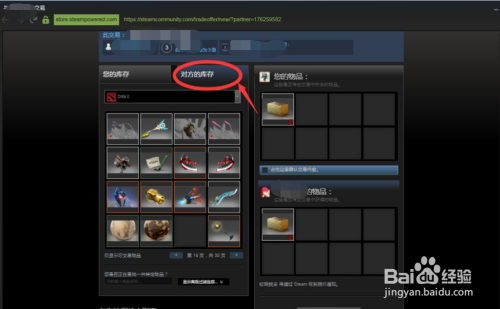 6.点击对方库存,选择物品后双击该物品进行交易报价。