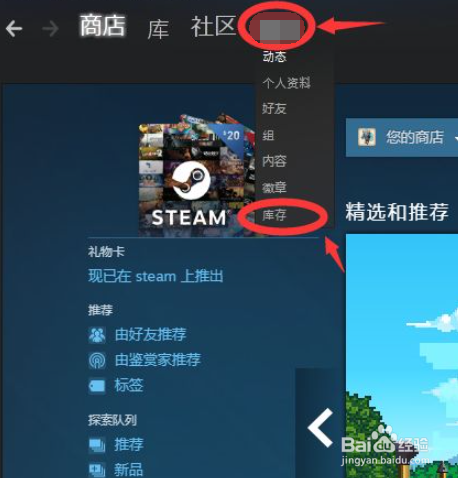 打开steam登录上去后选择自己账号下面的库存选项。如下图所示: