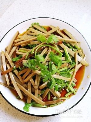 小区团购群里团了包鸡蛋干,冰箱里又刚好有香菜,怎么办尼,凉拌呗,哈哈!