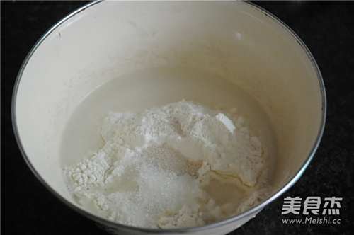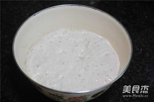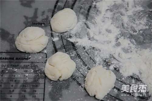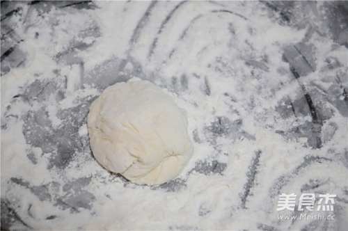 4将发酵好的面团取出,放在洒满面粉的案板上,排气团圆