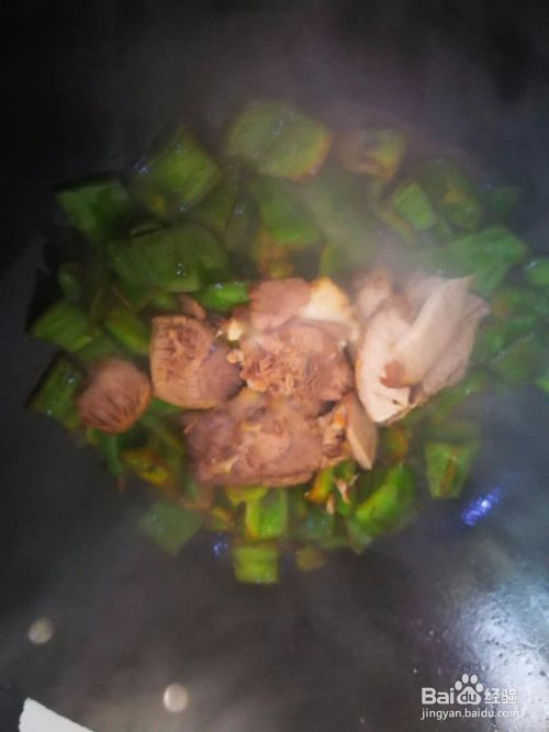 热锅冷油,将大辣椒块儿下锅,快速翻炒,大辣椒变软的时候加入牛肉片继续翻炒。沿着锅边淋上海鲜酱油,加少量的盐。