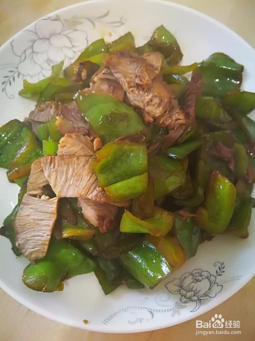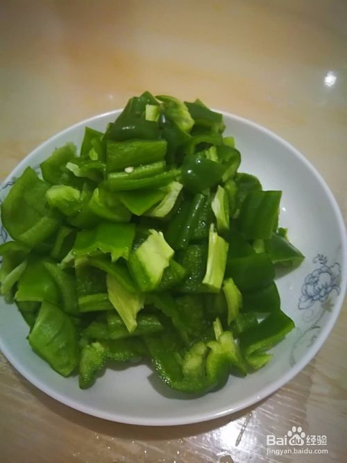 大辣椒洗净、切块备用。熟牛肉切片备用。