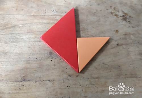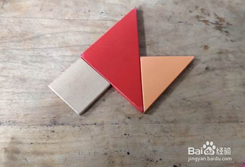 摆上橙色三角形,放在红色三角形右侧挨着,如图。