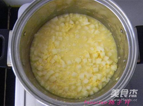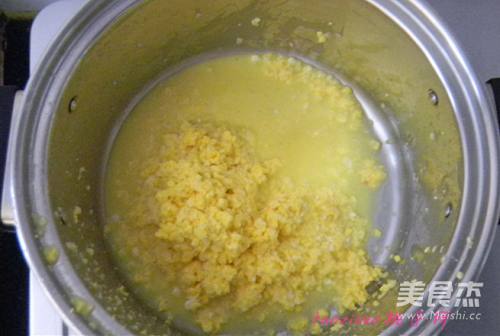 4擦好的玉米碎放入煮锅里;