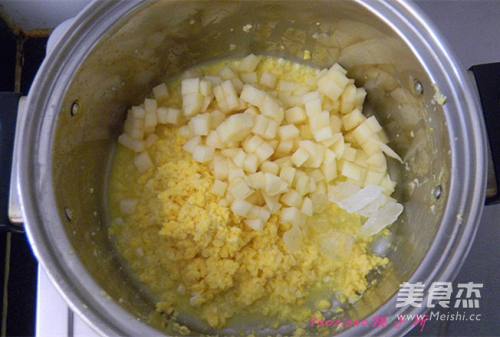 5再放入苹果丁、冰糖;
