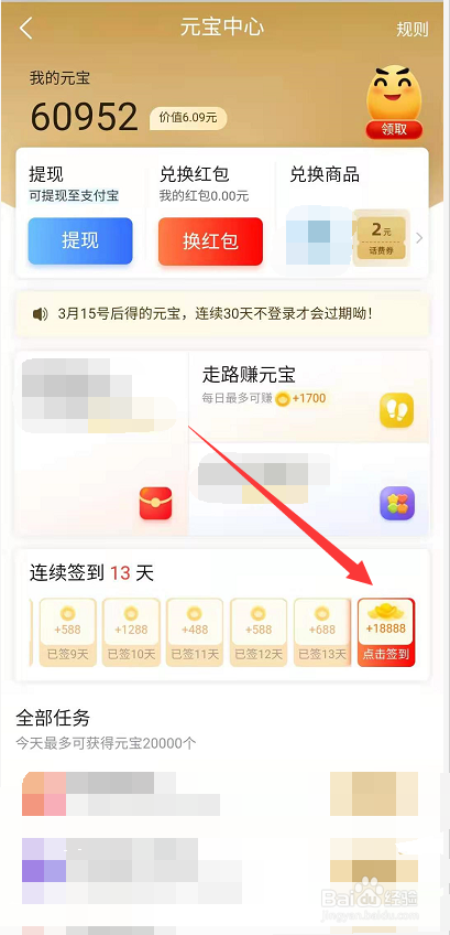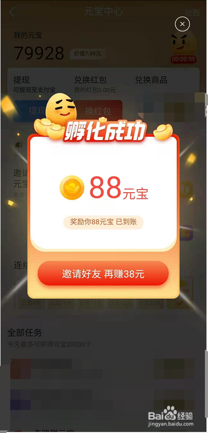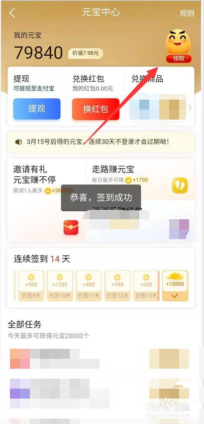 4、签到后点击上方的金蛋领金币,金蛋是定时有金币领的,领完之后看它还需要多长时间再领就好了。金币满10块的时候可以申请提现。