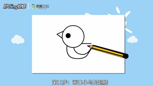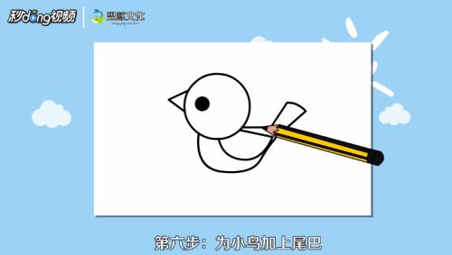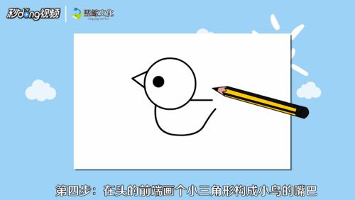 4第四步:在头的前端画个小三角形构成小鸟的嘴巴。