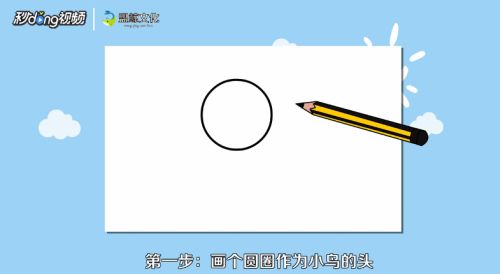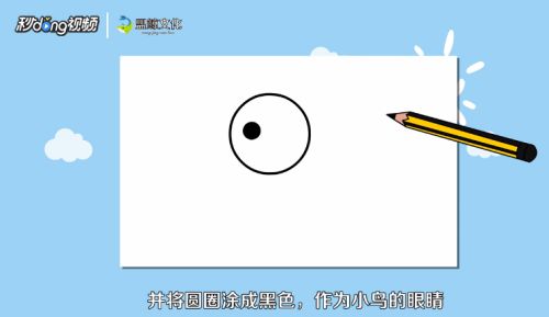 2第二步:在大圆圈内再画个小圆圈并将圆圈涂成黑色,作为小鸟的眼睛。