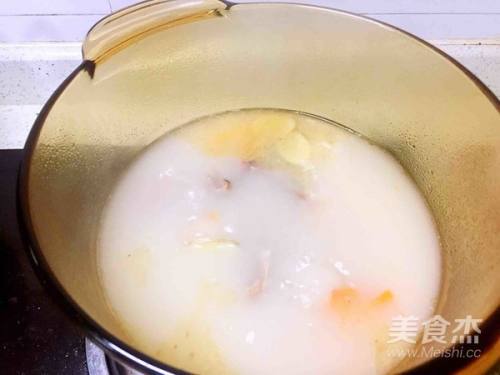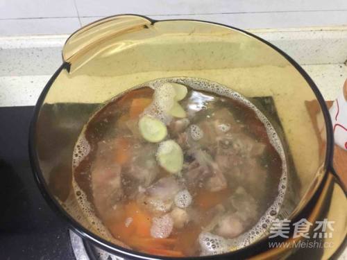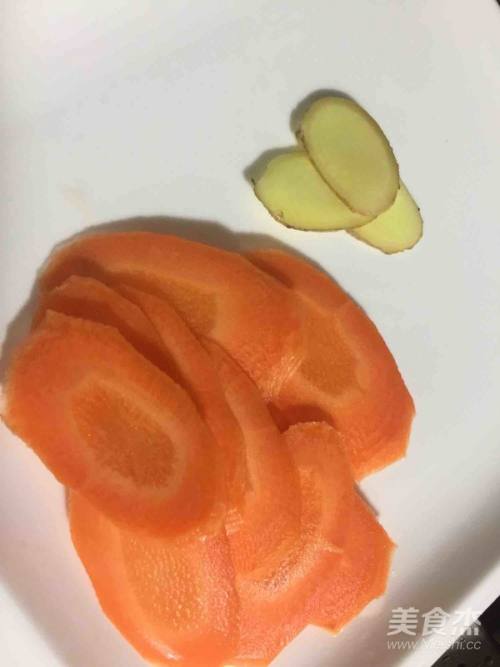 大火烧开水,放入姜片、胡萝卜和咸猪骨