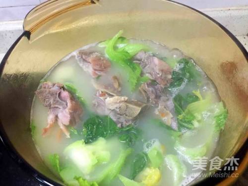 放入芥菜,煮软即可。咸猪骨本来就有咸味,尝一下,如果不够咸,再加适量盐调味。