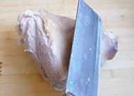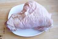 将猪肉皮用刀刮去残毛,刮净肥油洗净