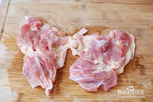 将鸡腿肉放入容器中,加入姜、柠檬、料酒、黑胡椒粉,腌制30分钟