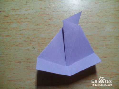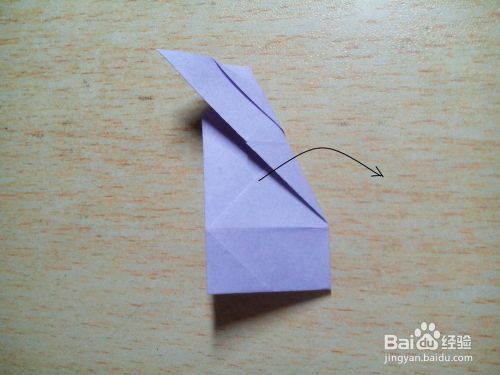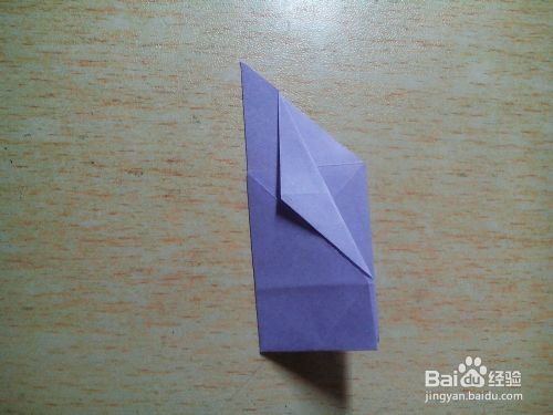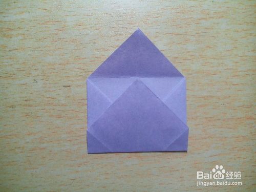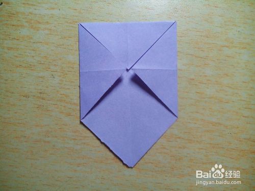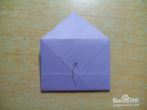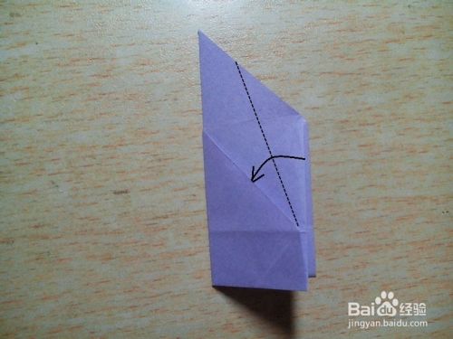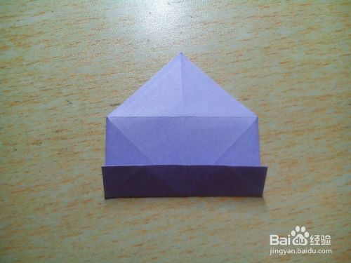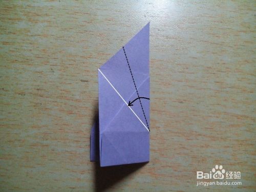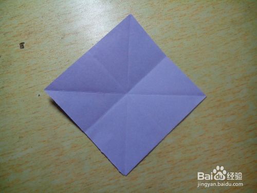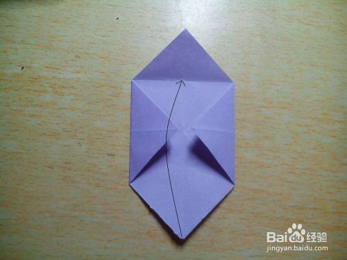 把下面的边按照折痕折上去,压紧后打开(其实折这一步是因为现在这面有折痕,可是另一面没有)。