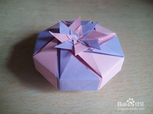 颜色交错着插好8个后,礼盒的盖子就做好啦(塞最后一个的时候比较容易散,注意先把另外7个层叠的顺序理好)。
