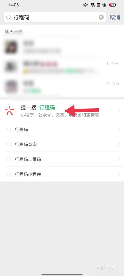 打开手机微信在搜索出输入行程码点击搜一搜。