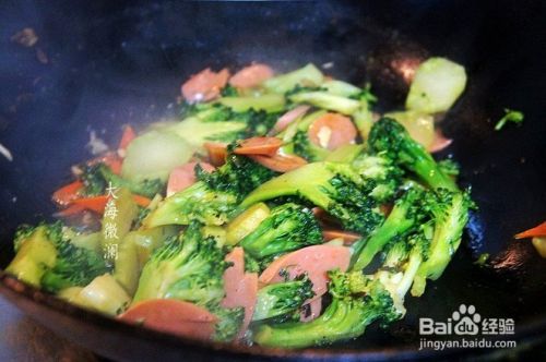 加入西兰花翻炒。