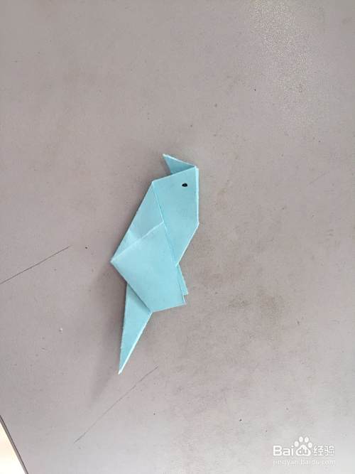 最后我们再用笔在它的头上画上眼睛,我们的鹦鹉折纸就完成了。