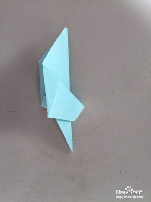 然后再把上面的尖角向内翻折起来,做成嘴巴