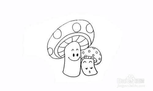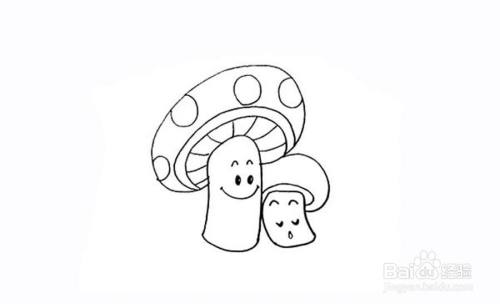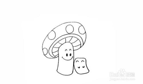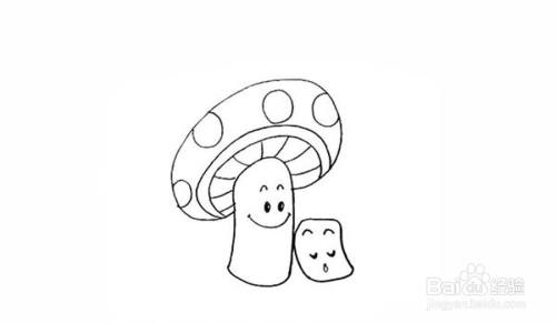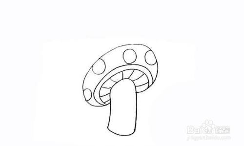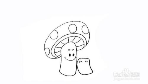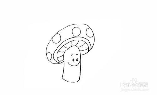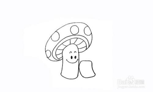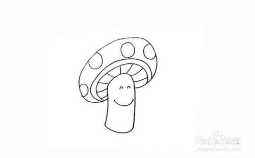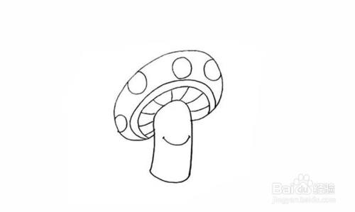 接着用弧线画出蘑菇微笑着的嘴巴。
