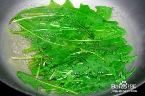 锅里把水烧热,加1汤匙油。蒲公英洗净后放入焯一下。倒出备用。
