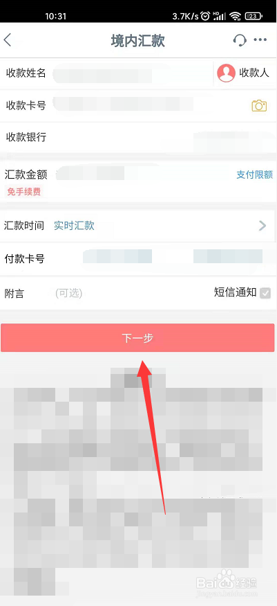 输入一类卡号的信息,转账金额,点击【下一步】