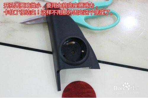 根据购买喇叭的大小开孔,开孔的时候要注意,可小不可大哦。小一点还可以用刀扩大,大了你就需要到汽配城去购买配件了。主要是像这样额度专属配节可不好买哦。