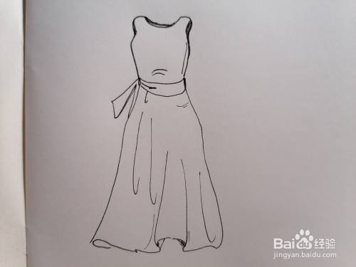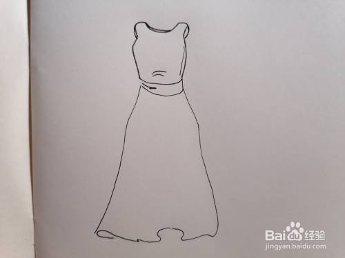 在下面画出连衣裙的下半部分,裙摆要画成不规则波浪线