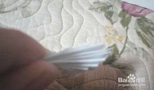 将刚才折叠好的这些小长方形左右捏齐,压紧折出折痕。