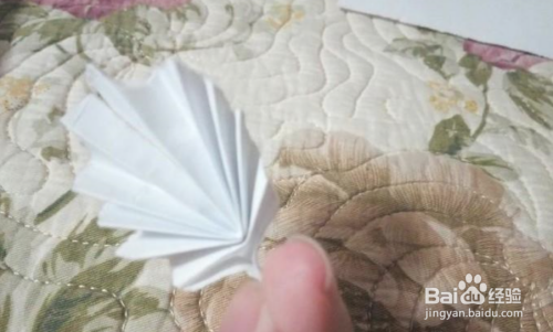 将小三角形打开如下图所示,如果用剪刀剪的话会更好看一些。这里小编为了方便直接用手撕的。