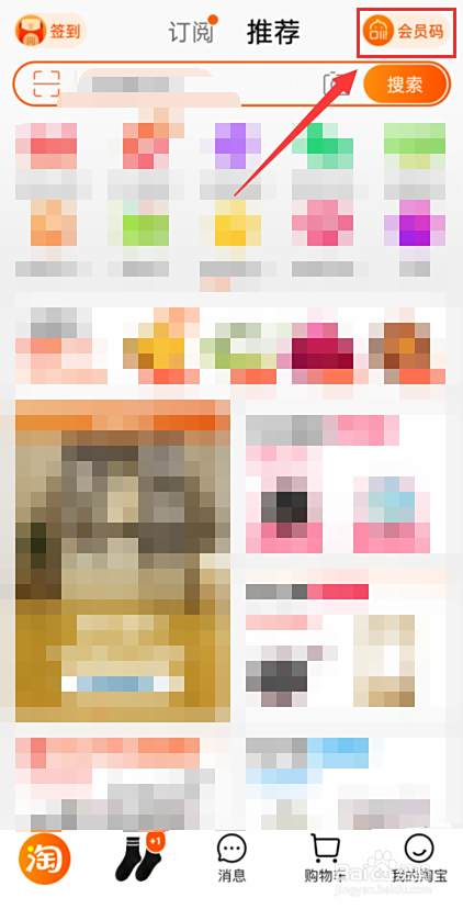 我们打开淘宝后,进入淘宝首页,点击右上角的会员码。