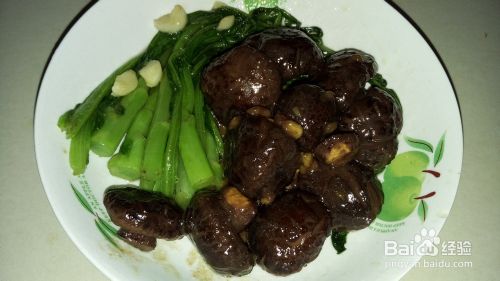 最后将煮好的香菇盛出,装到油麦菜的一旁,一碟嫩滑香甜的焖香菇做好了。
