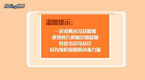 5温馨提示,一次或者两次冷战可以让对方更加珍惜爱情,但是多次冷战会成为损耗爱情的负面力量。END