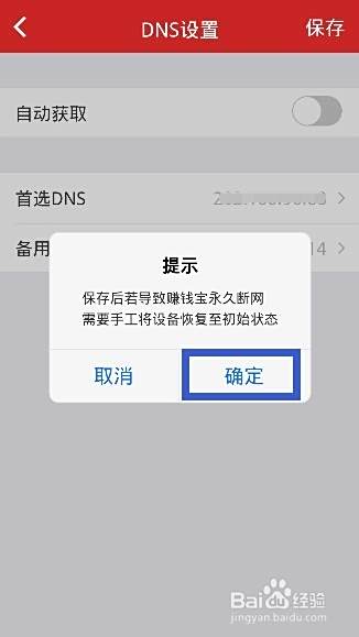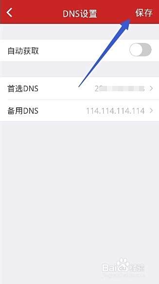在“DNS设置”界面中,可以利用同样的方法设置“备用DNS”,待设置完成后,点击“保存”按钮。