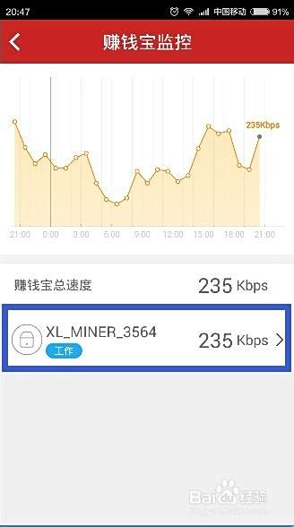 待进入“赚钱宝监控界面后,点击“当前正在工作”的迅雷赚钱宝名称进入详细设置界面。