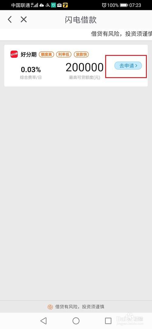 第三步进去闪电借款之后,点击去申请,如下图所示: