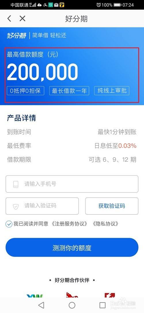 第五步填写信息,验证身份之后,可以进行借钱,根据需要使用,如下图所示: