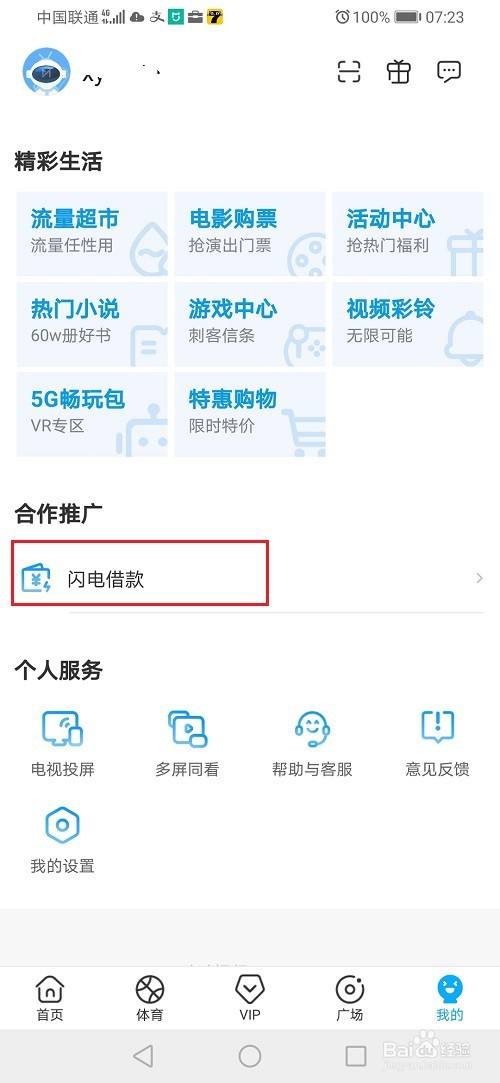 第二步进去咪咕视频我的界面,点击闪电借款,如下图所示:
