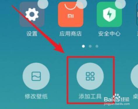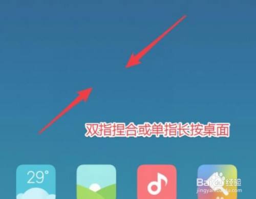进入小米桌面后,或者双指快速在屏幕合拢,进入编辑界面。