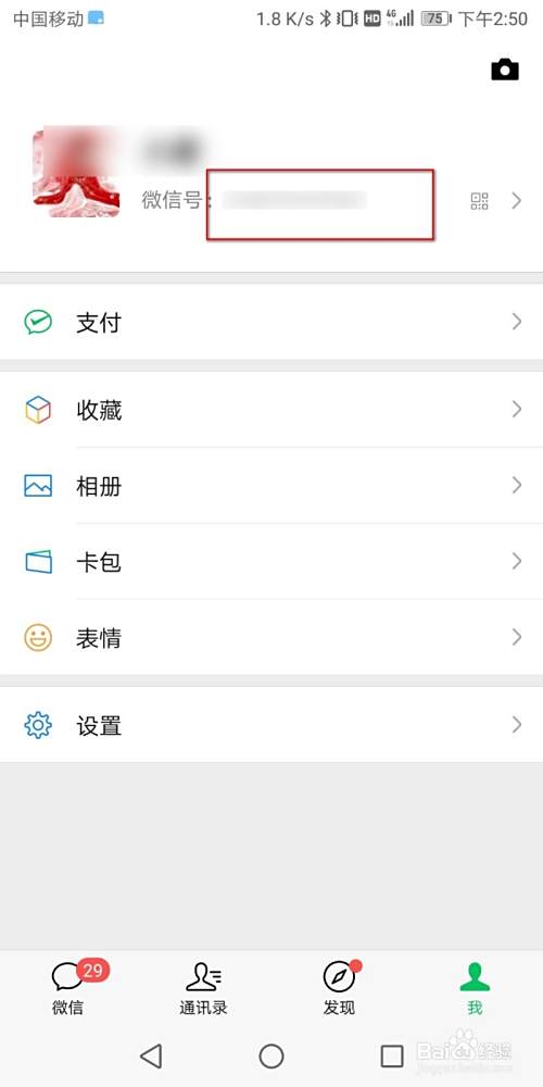 当然你也可以问自己的好友去查看自己的微信主页,让好友告诉你的微信号是什么。