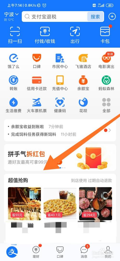 点击关闭后,我们返回到支付宝首页,就能看到原先的"大牌直降"模块没有了。