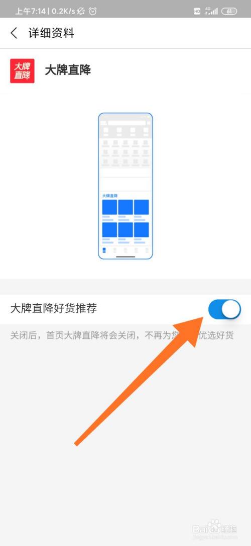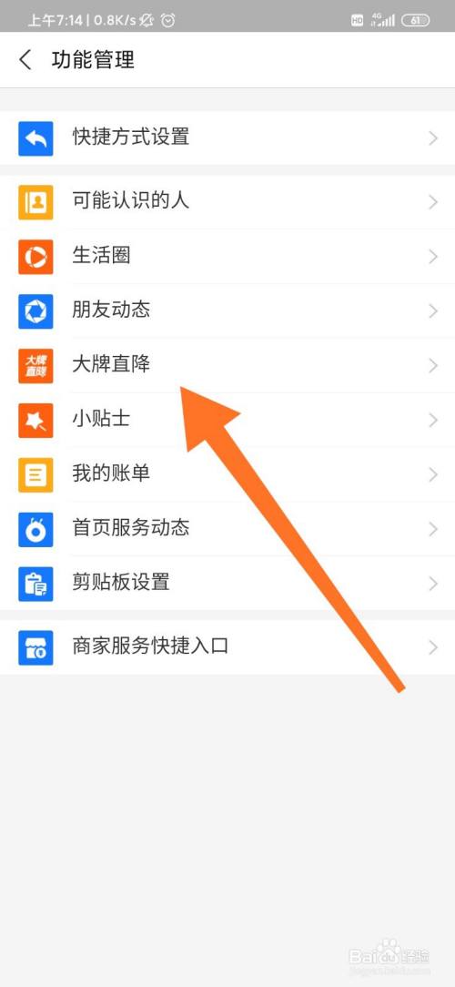 接着进入到功能管理页面,我们就能看到支付宝首页的功能项目,选择要关闭的功能,比如打开"大牌直降";