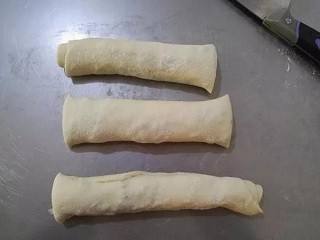 卷起,收口,切成三份。