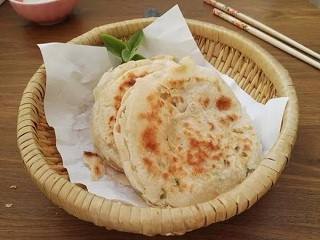 面粉和温水混合,揉匀,擀成面片,抹上猪油,撒上香葱,卷起,收口,切成三份,竖起,擀成面片,锅内抹上猪油,放入饼胚,盖上盖子,烙至定型,翻面,烙至两面金黄。