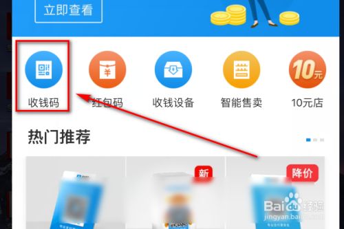 在商家工具选择界面选择收钱码选项,点击进入到获取商家收钱码的申请设置界面。