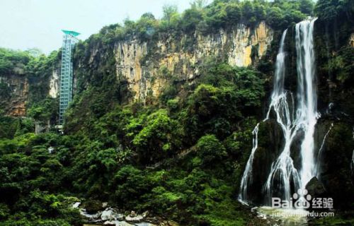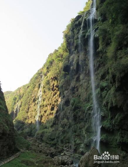 景区的观光路线很简单,就是在谷底绕一个圈。在景区小青山入口进入景区,乘观光电梯下到谷底,在雨洒芭蕉长廊可欣赏雨洒芭蕉瀑布,然后左拐,沿河西边的游道前行。
