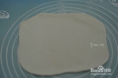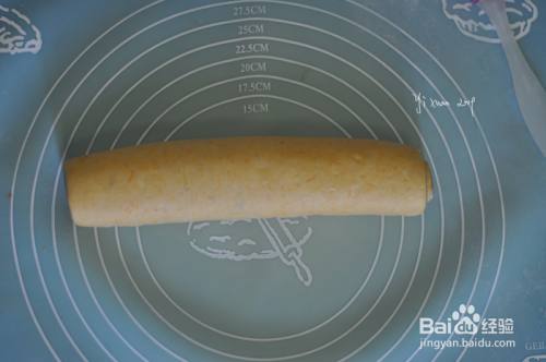 面团盖上保鲜膜醒10分钟后,取黄色面团,擀开