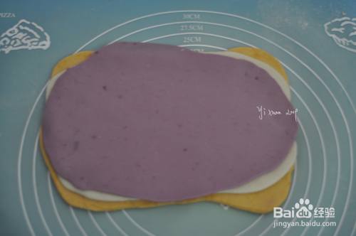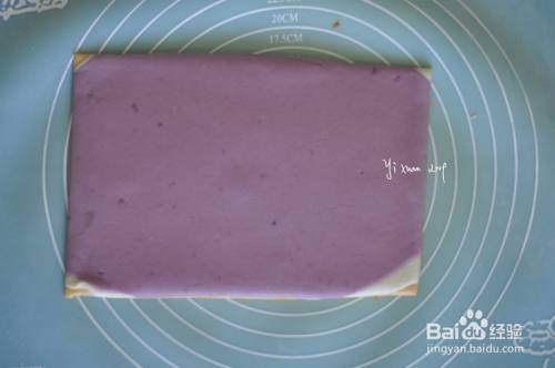 紫薯面片铺在上面,面片之间刷一层食用油
