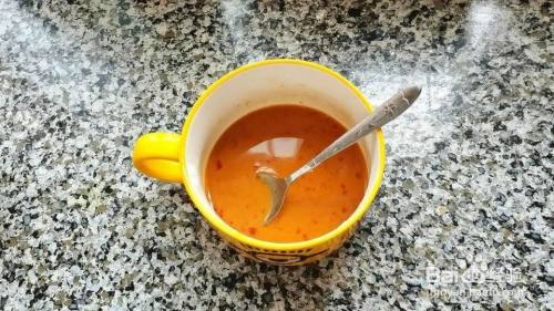 下面来调点料汁:2勺生抽、1勺白糖、1勺十三香、1勺香醋、1勺玉米淀粉、2勺番茄酱、适量盐,再加适量清水,充分搅拌均匀备用
