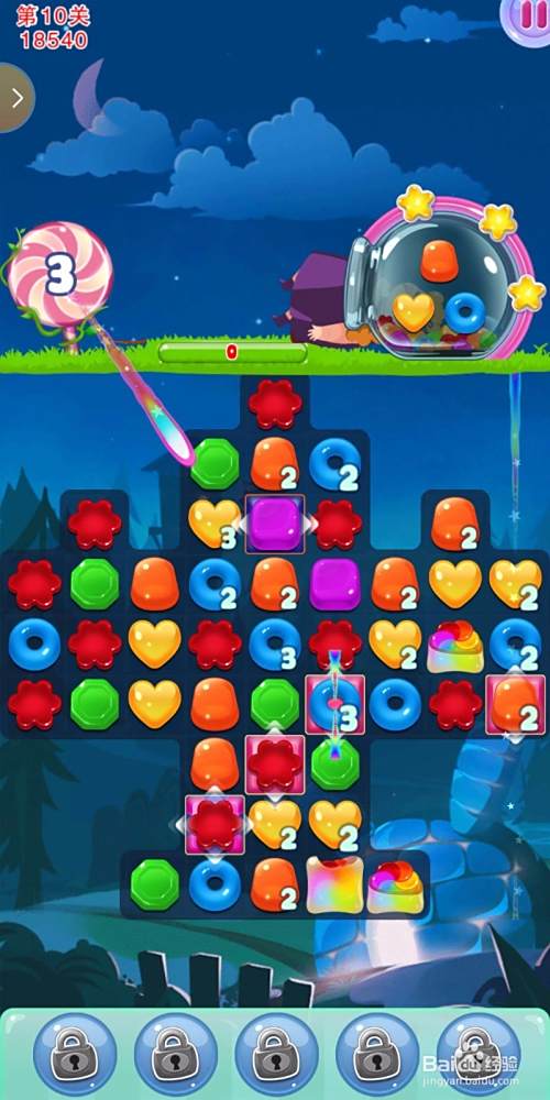 接下来消除数字多的糖果,这样就能很快过关了(如图)。